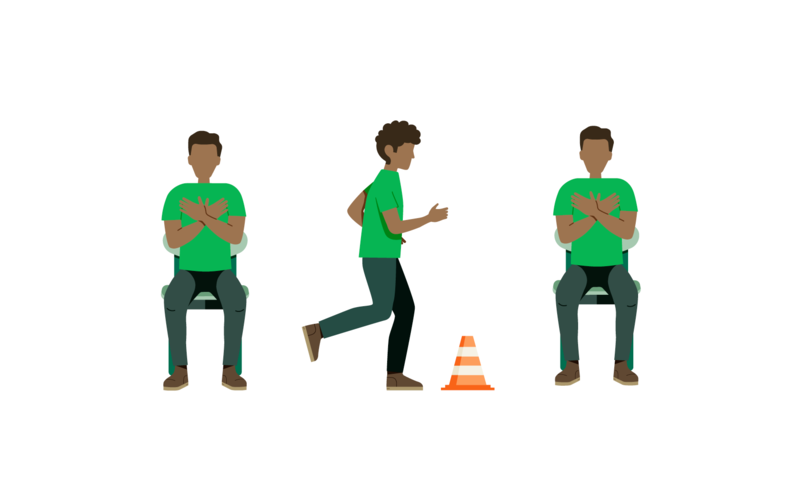 Sie können Ihre Geschicklichkeit testen, indem Sie einen kleinen Parcour ablaufen und die Zeit dabei messen. Der Parcour besteht aus einem Stuhl und einer Markierung im Abstand von 2,4 Metern. Stehen Sie von dem Stuhl auf, umrunden Sie die Markierung und setzen Sie sich wieder hin.